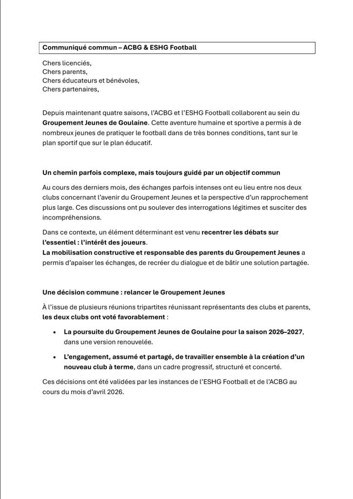 Communiqué de l’AC Basse-Goulaine & de l’ES Haute-Goulaine